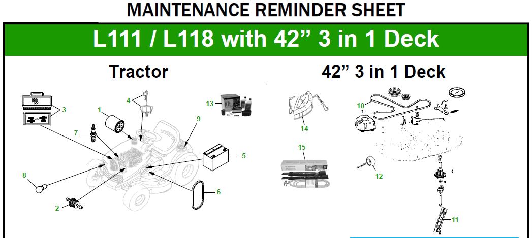 13 LG230...............HOME MAINTENANCE KIT ( L111 & L118 )
