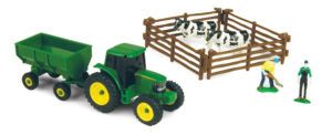• It includes one tractor, a wagon, two farm figures, two farm animals and four pieces of fence.