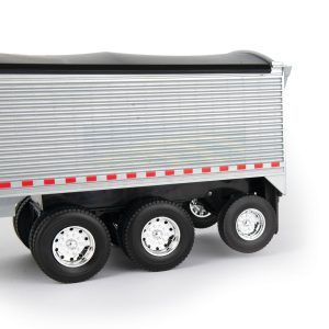 • Interactive Toy: Features opening cab doors and adjustable mirrors on the semi; with a movable jack stand, opening tarp, and working hopper doors on the grain trailer