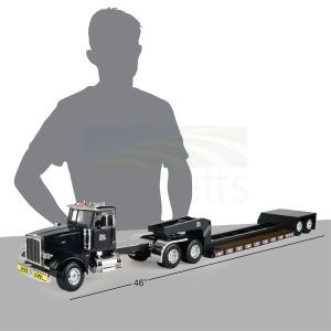 Big, Bigger, Biggest! Big Farm's 1:16 Peterbilt Model 367 with Lowboy Trailer is better than ever. It now features "WIDE LOAD" signs on the cab and the trailer.