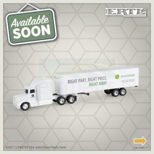 • 1:64 John Deere Parts Freightliner semi-trailer truck.
