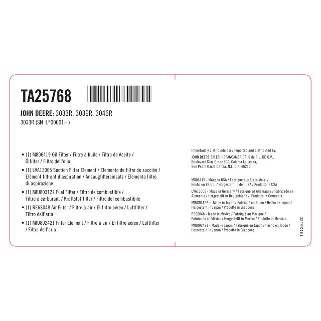 • The John Deere Filter Pak makes annual maintenance on your compact utility tractor easier than ever