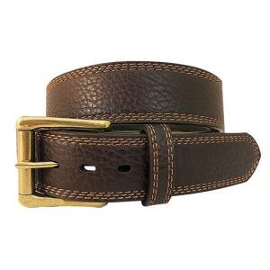 John Deere Dark Brown Belt 38mm Pebble Grain Triple Stitch Leather with Antique Brass Roll Bar Buckle 4572500-204John Deere Dark Brown Belt 38mm Pebble Grain Triple Stitch Leather with Antique Brass Roll Bar Buckle 4572500-204