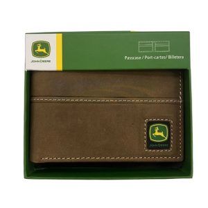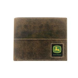 John Deere Tan Distressed Leather Bi-Fold Wallet with Rubber Trademark Patch 4096000-210John Deere Tan Distressed Leather Bi-Fold Wallet with Rubber Trademark Patch 4096000-210